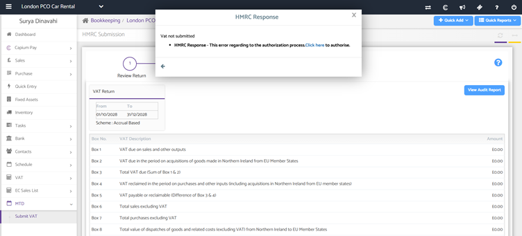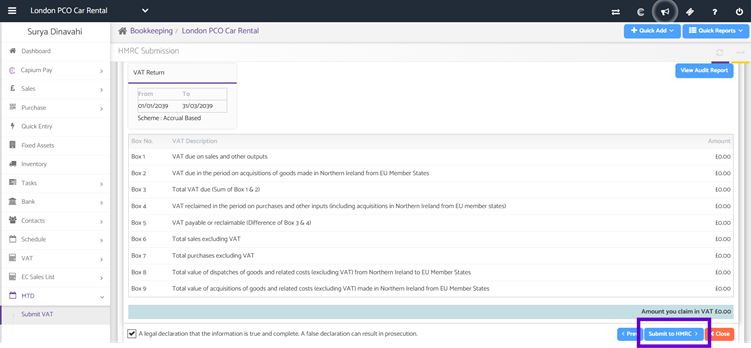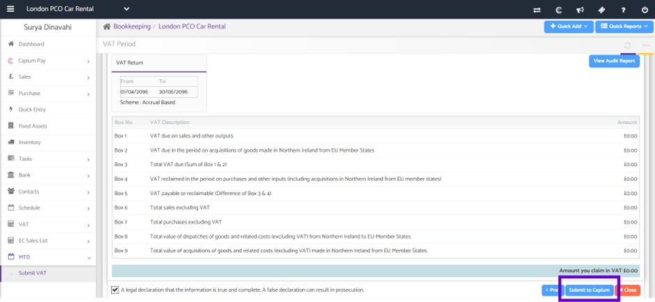 - Capium will generate the 9 box VAT summary for you to review.