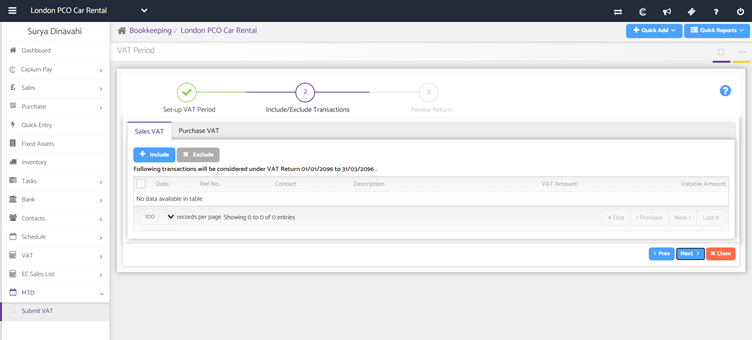 - To add VAT transactions that are outside of the VAT period, click on 'Include'.
