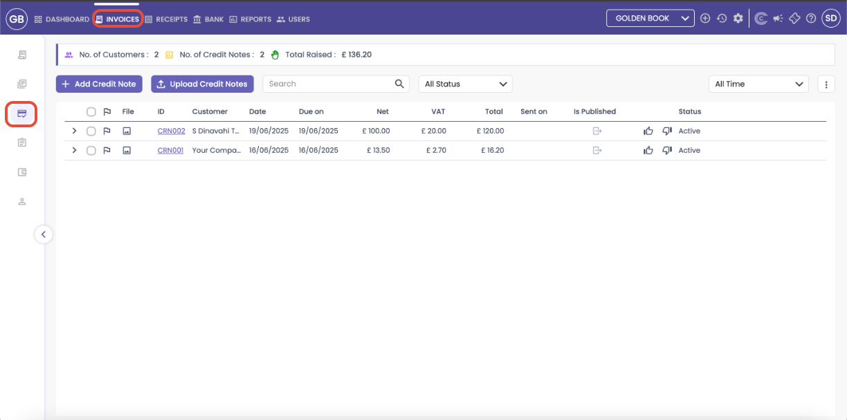 - Credit Notes