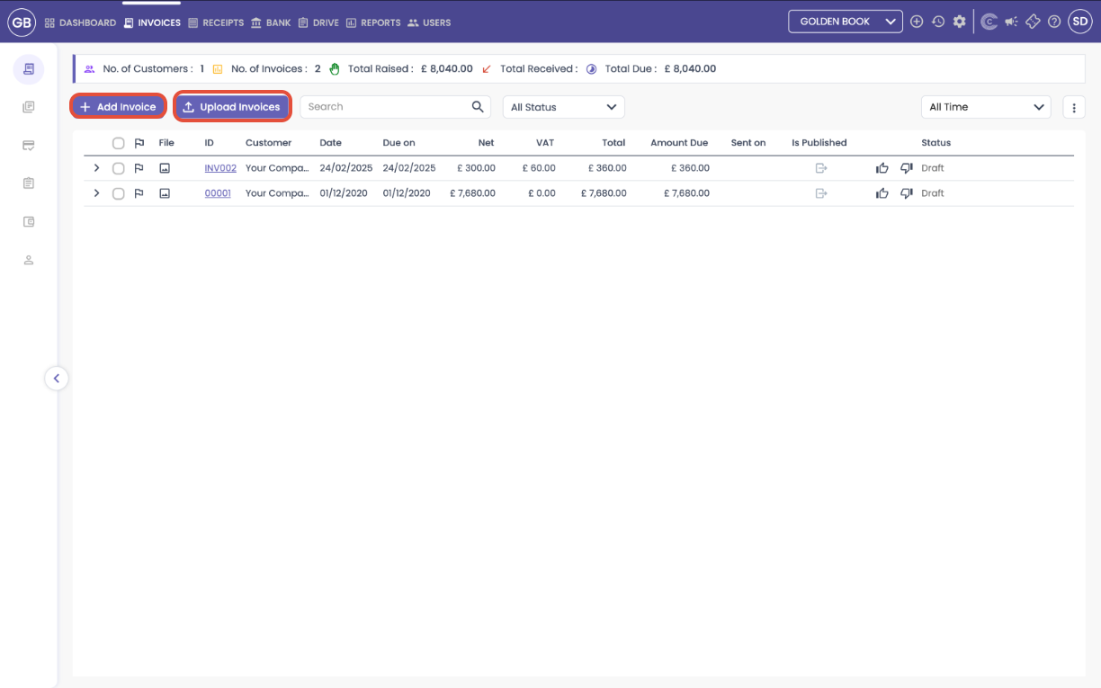 For a more detailed guide on how to add or bulk upload invoices, please see the help article below: