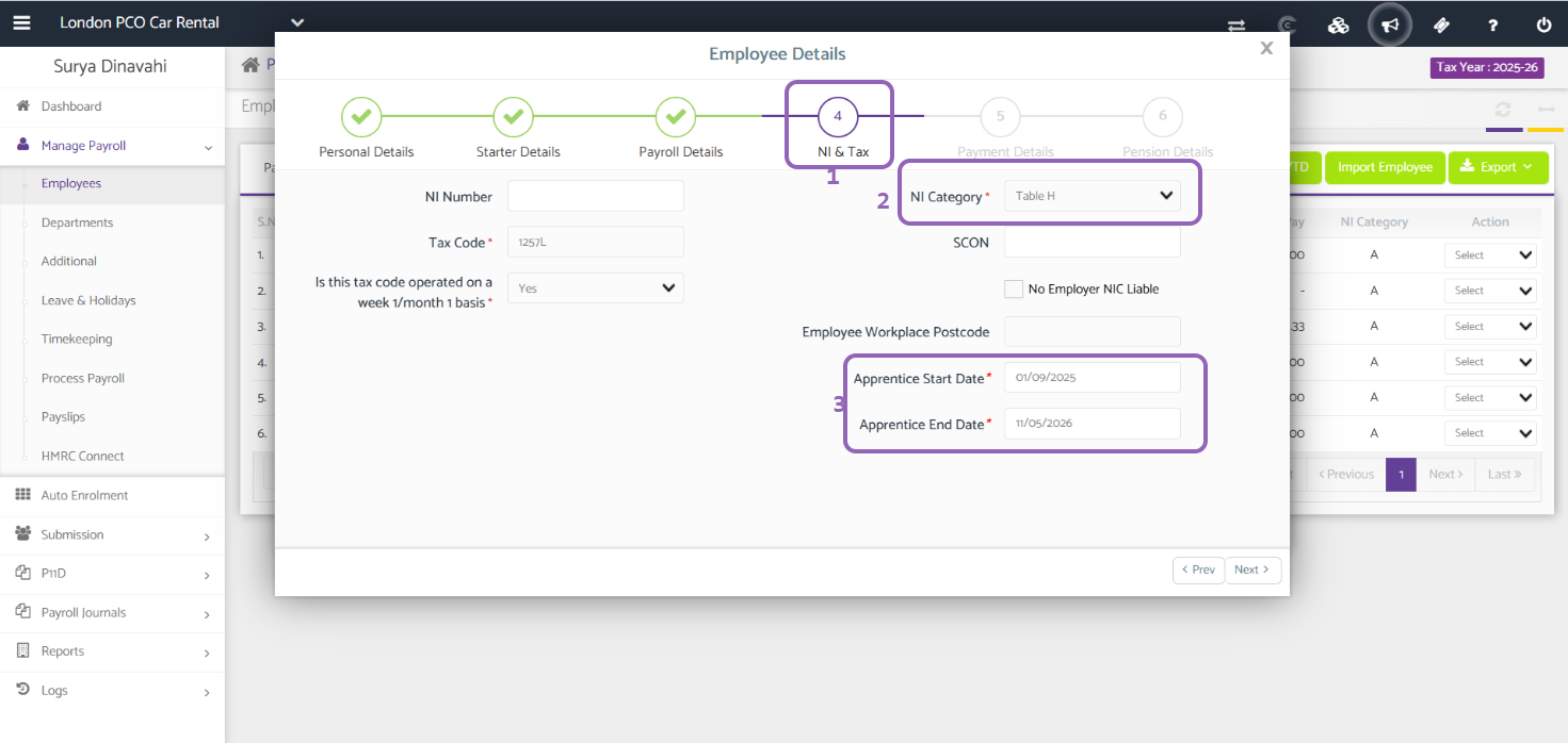 This will direct you to the Employee Details tab. From there, navigate to Page 4: NI & TAX.