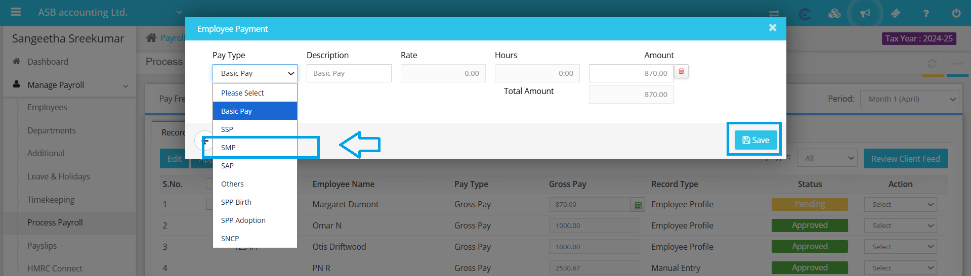 Adding Statutory Maternity Pay (SMP) manually in Capium is a straightforward process that ensures your employees receive the correct payments during their maternity leave. Follow the steps below to add SMP for an employee: