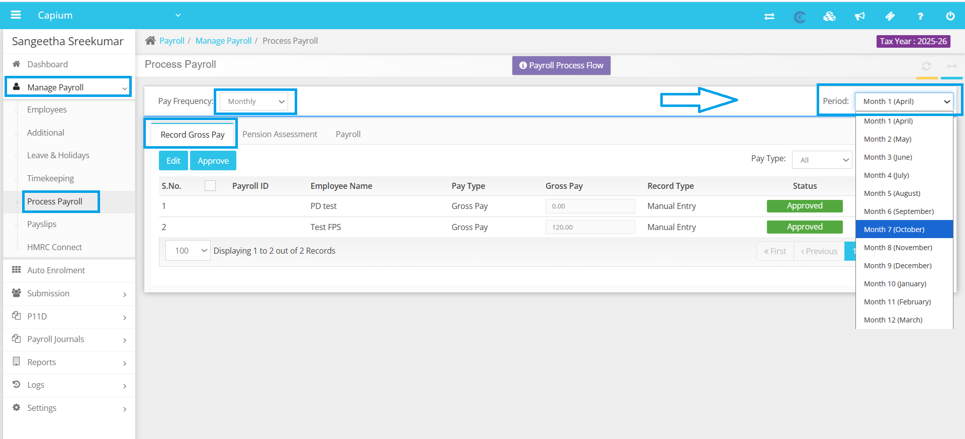 - First, ensure that the gross pay has been approved for the relevant period. If the gross pay has not been approved, the employees' names may not appear during the payroll processing.