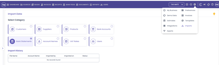 Capium 365 > Client > Settings (top right) > Imports > Bank Statements