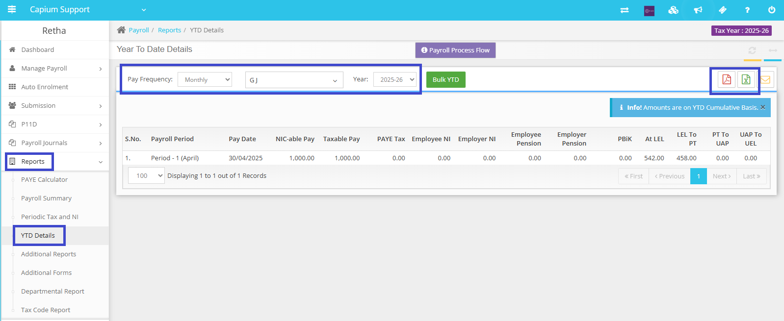 6. Download Report: After selecting the employee's name, you will be able to download the YTD report for the specified period.