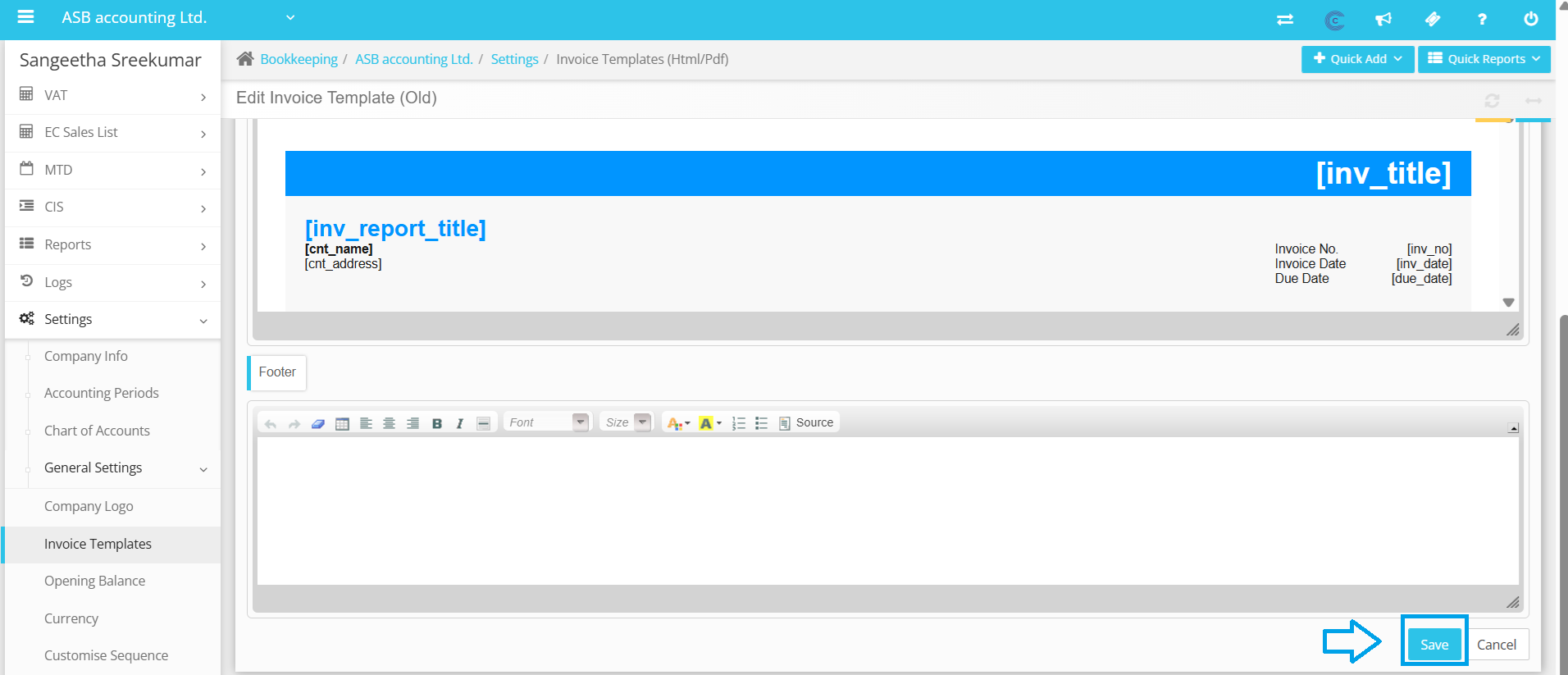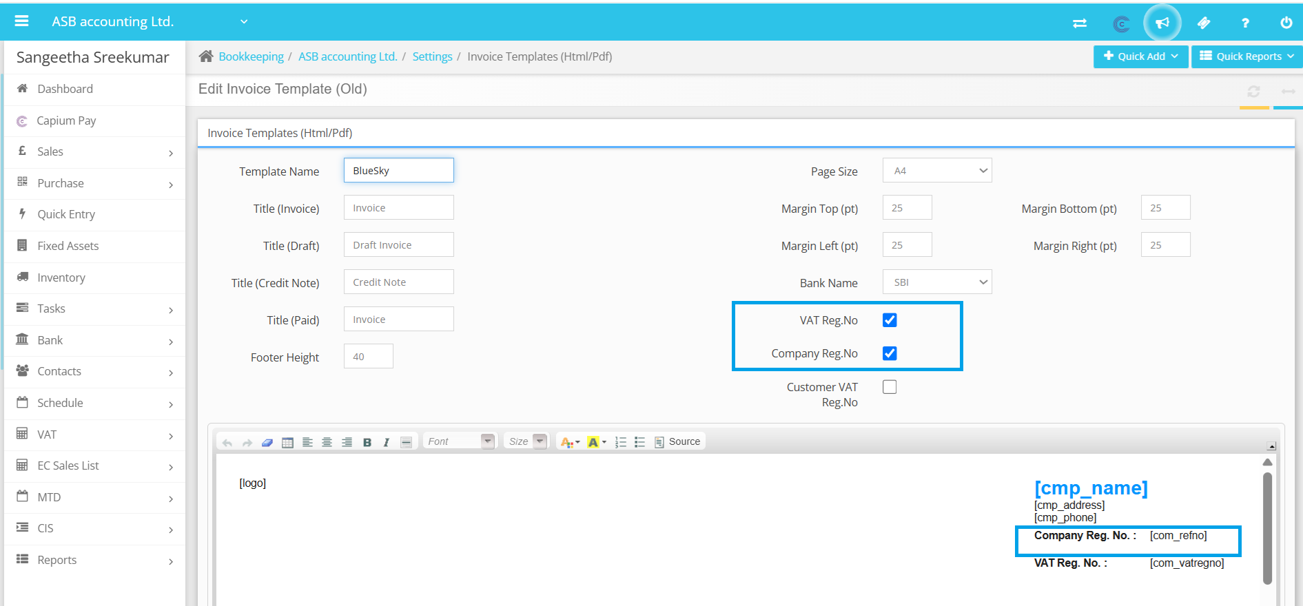 How to Customize Invoice Templates to Add the Company Reg. No. at the top of the invoice.