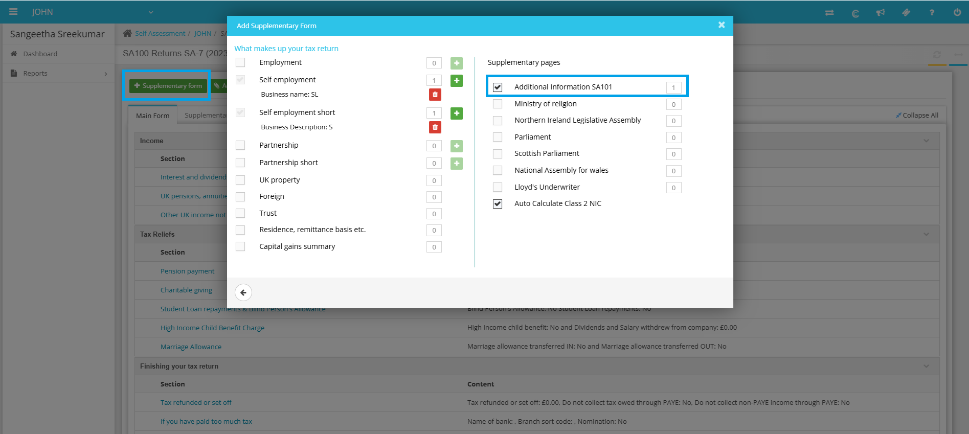 1. You will need to add the Supplementary page - Additional Information SA101.