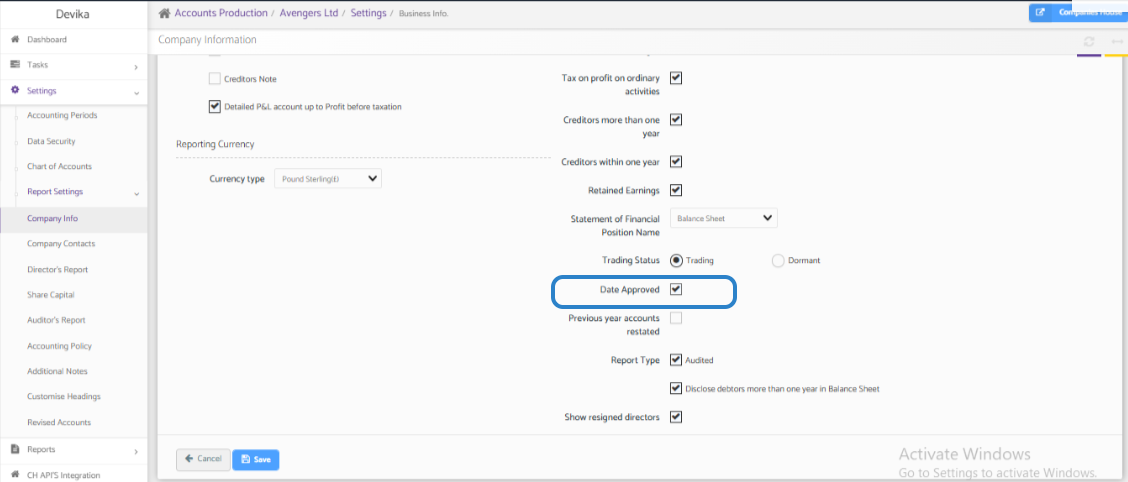 In order to incorporate the approval date into the accounts report, follow these steps: