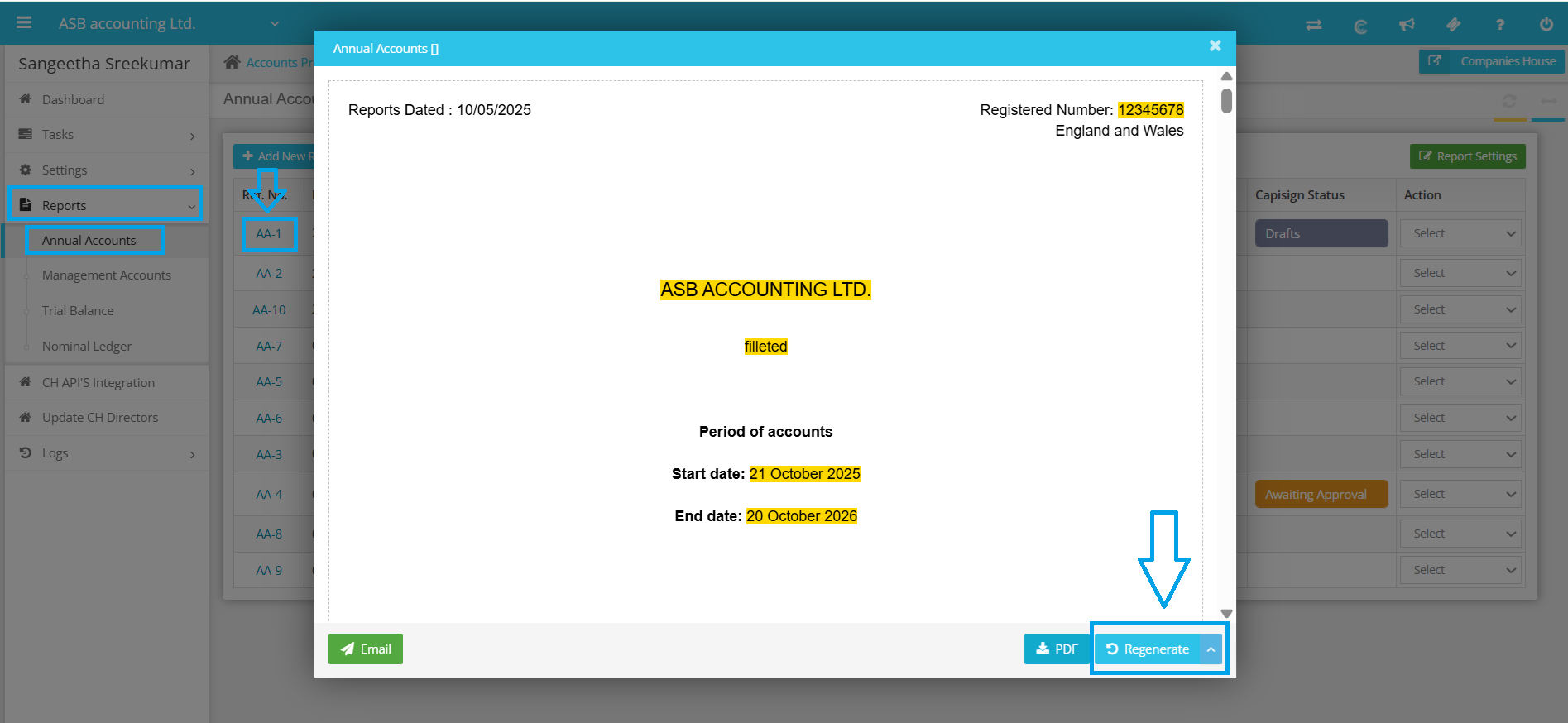 After completing these steps, the system will automatically incorporate the new information into your accounts report when it is regenerated.