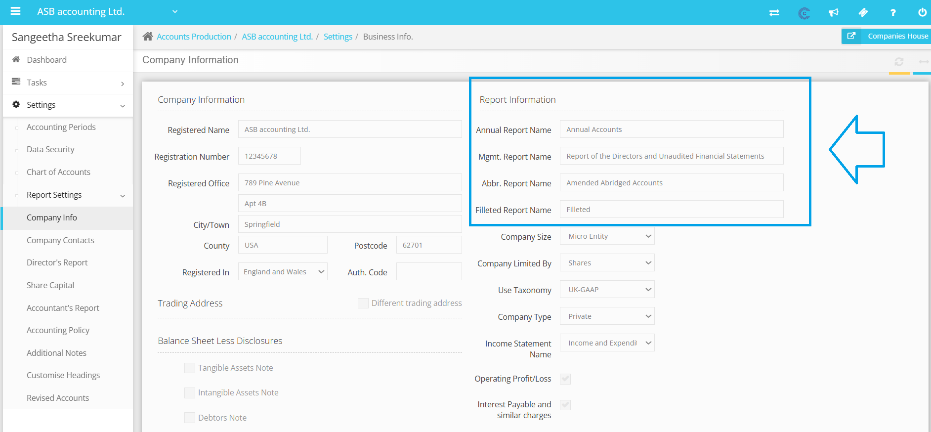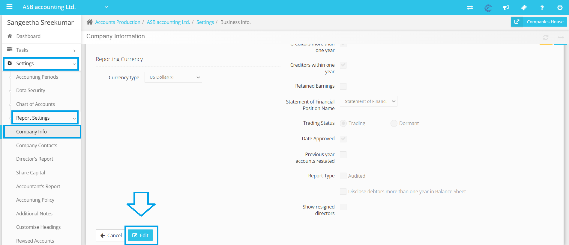 4. Edit Report Information: Under the Company Info section, you will see an option to edit your Report Information. Click on this to access the fields that can be modified, including the report name.