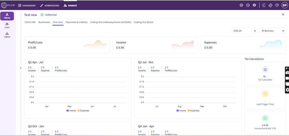 This guide explains how your practice should handle End of Year (EoY) for a client where all quarterly updates (Q1–Q4) were submitted using a third-party application, and you are using Capium only from the annual submission stage onwards.