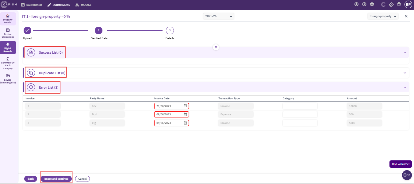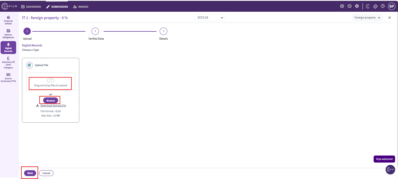 Now reupload the CSV template into the system by selecting browse or use drag and drop files option to upload the file
