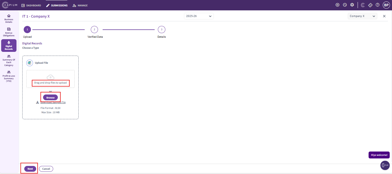 Now reupload the CSV template into the system by selecting browse or use drag and drop files option to upload the file