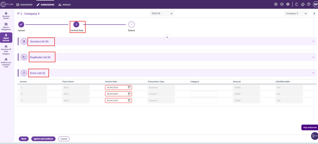 1. Success list will show the records that have been successfully imported
