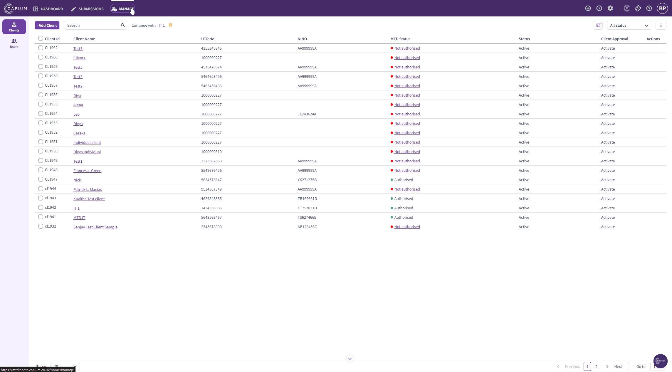 Currently all new MTD IT clients must be added directly inside the MTD IT module.