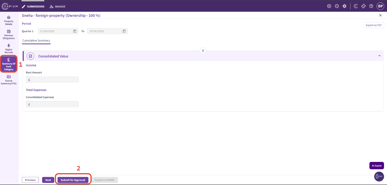 From here, navigate to the Summary of Each Category and click on “Submit for Approval,” as shown in the picture below.